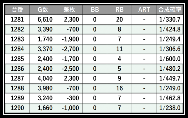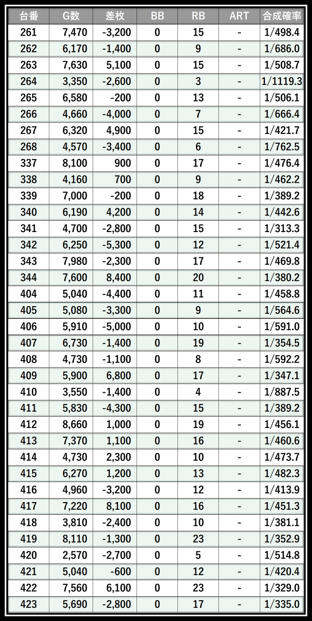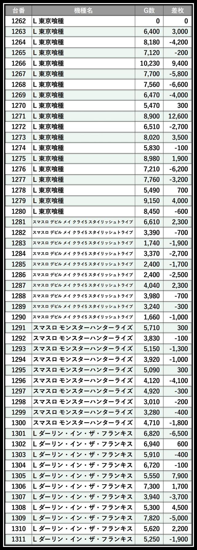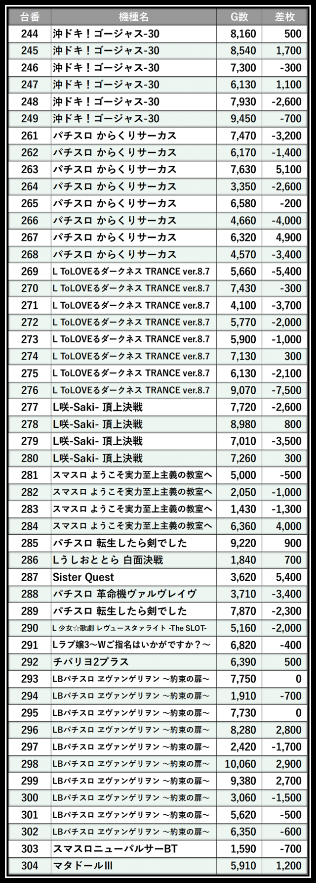 ※差枚数順に掲載しています