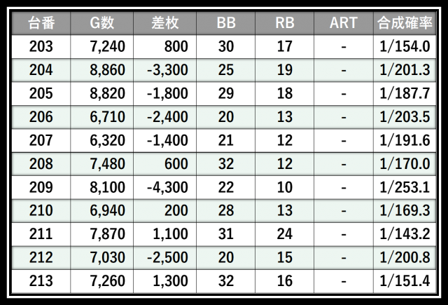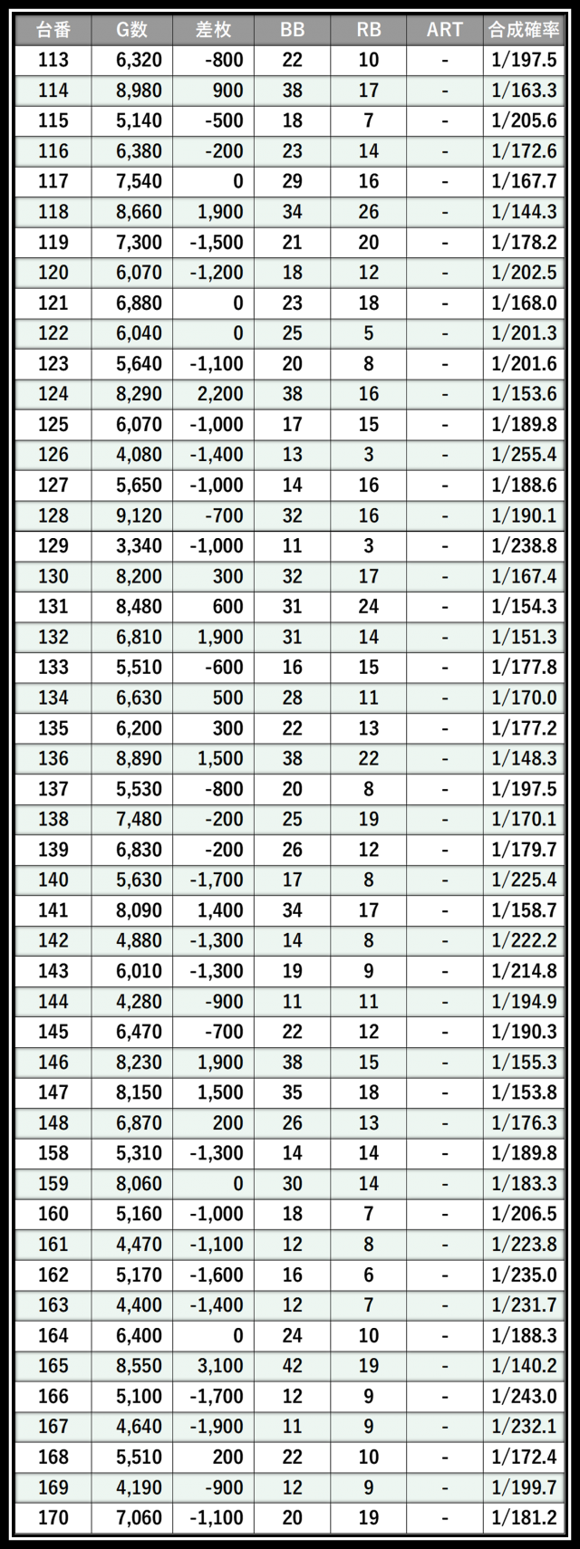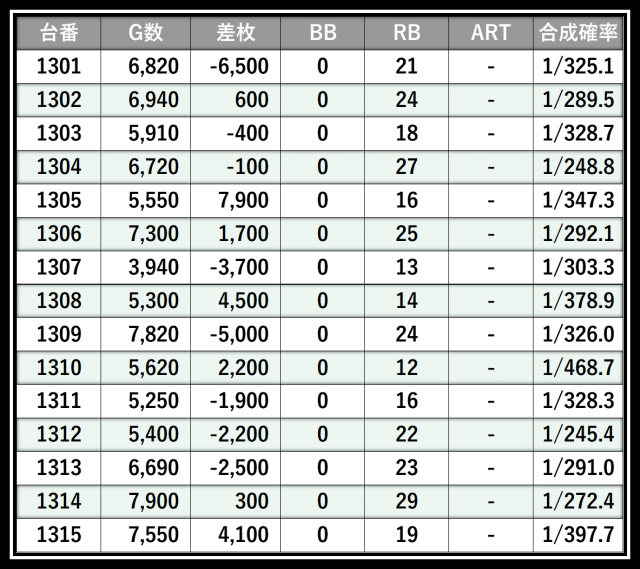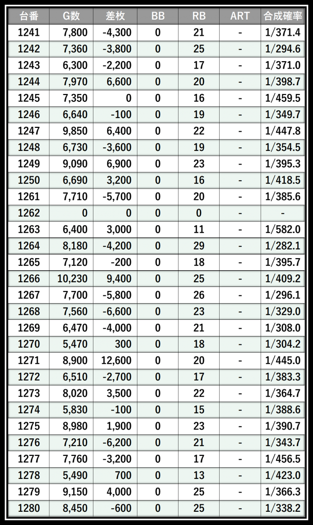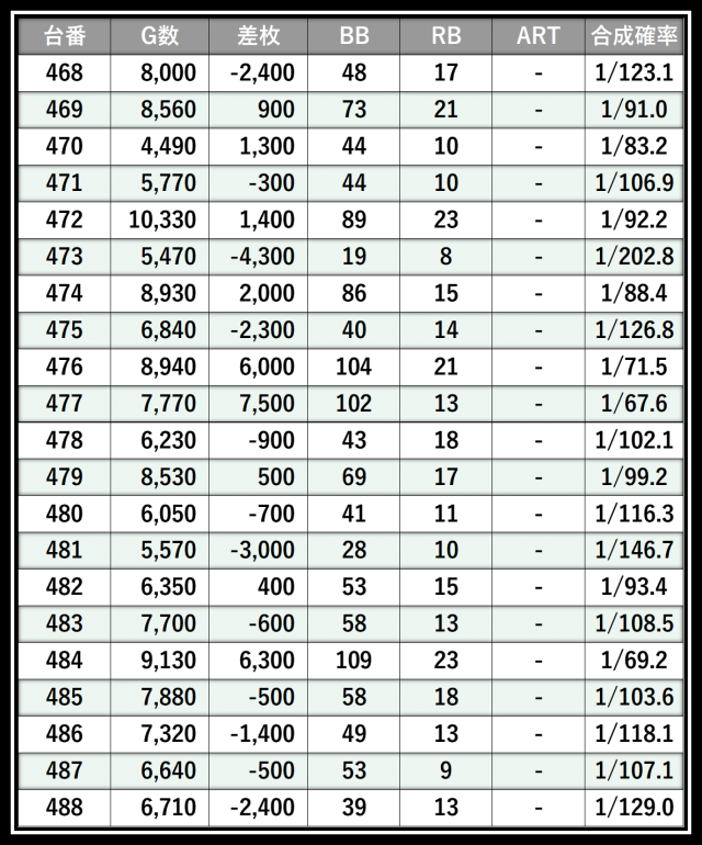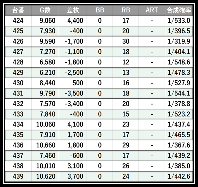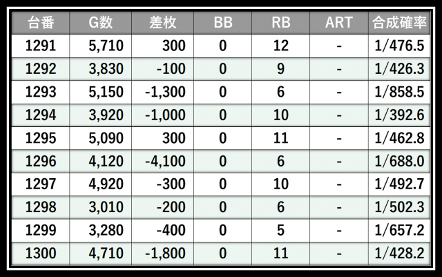 ※差枚数順に掲載しています