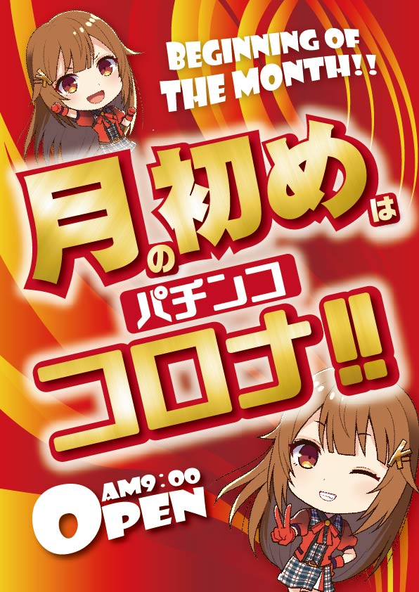 明日5日(木)パチンココロナ愛知全店一斉朝9時開店!