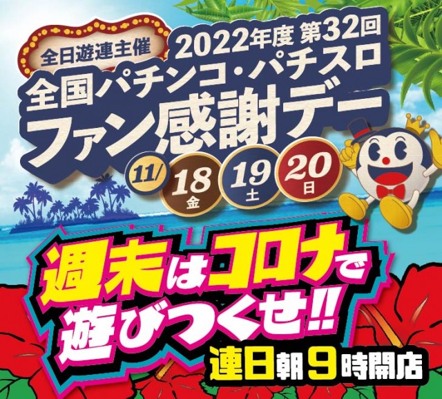 本日11月20日【土】パチンコパチスロファン感謝デー開催!