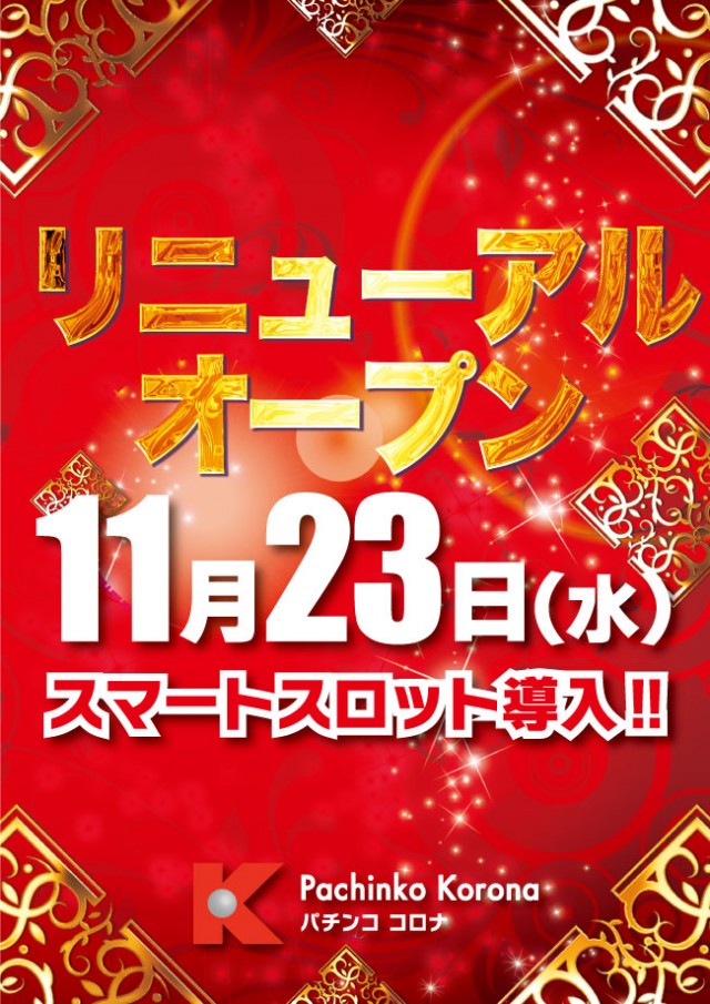 11月23日【水・祝】リニューアルオープン!スマスロ導入!
