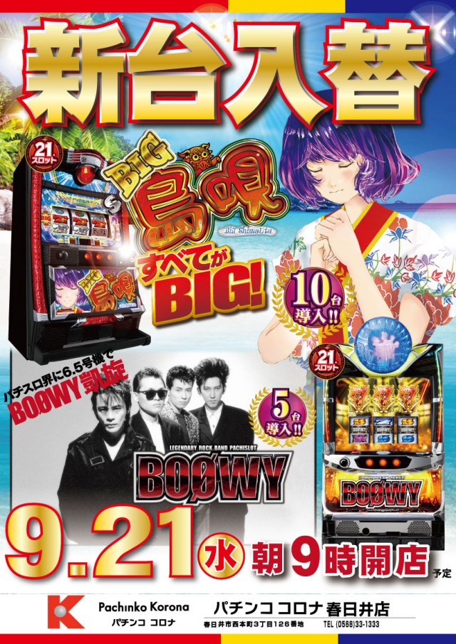 9月21日【水】★新台入替★朝9:00オープン