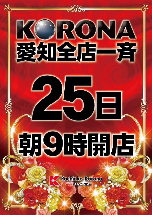 本日2月25日【金】パチンコKORONA 愛知全店一斉開店!