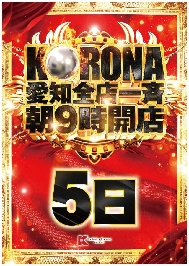 本日2月15日【火】パチンコKORONA 愛知全店一斉開店!