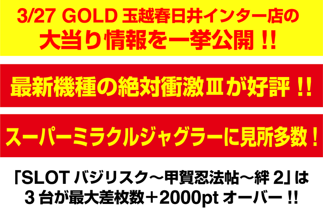 3月27日の日刊ぱちタウンは、「GOLD玉越春日井インター店」をピックアップ。