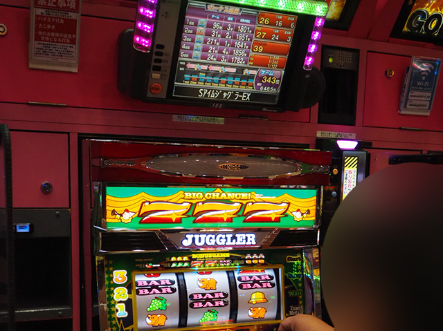 『ジャグラー』シリーズの人気も高く、『ファンキージャグラー』から『マイジャグラーⅢ』の並びで好調台を多く確認! さらに、6号機『アイムジャグラーEX』もBR比率が均等で合算確率約1/120の好調台も目撃できた。