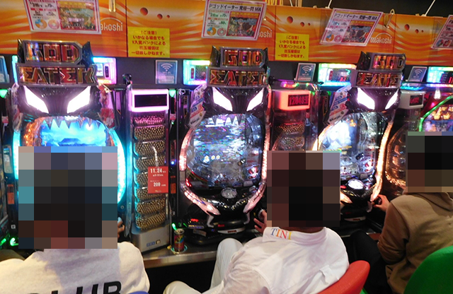 さまざまな機種が並ぶパチンコで、とくに目立っていたのが「Pゴッドイーター究極一閃」。
