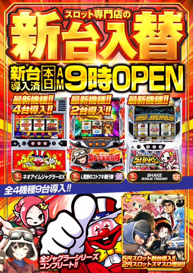 年中無休(新台入替準備の為お休みを頂く場合が御座います。) |