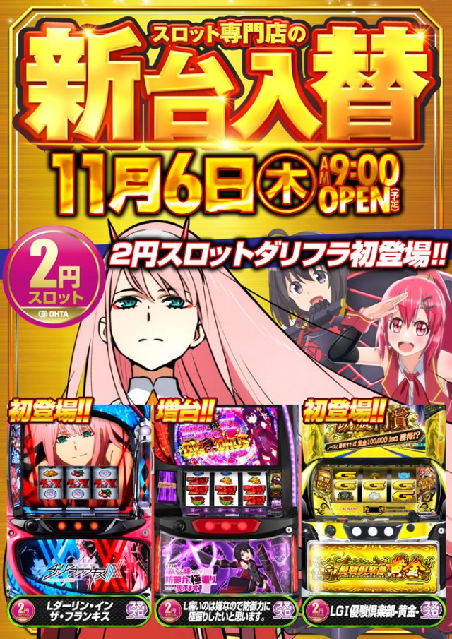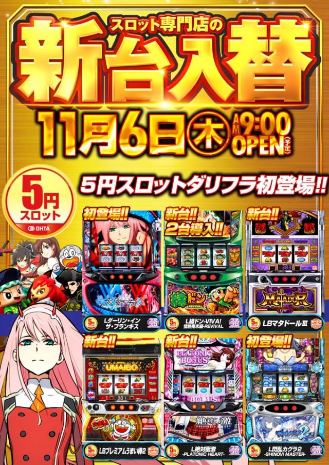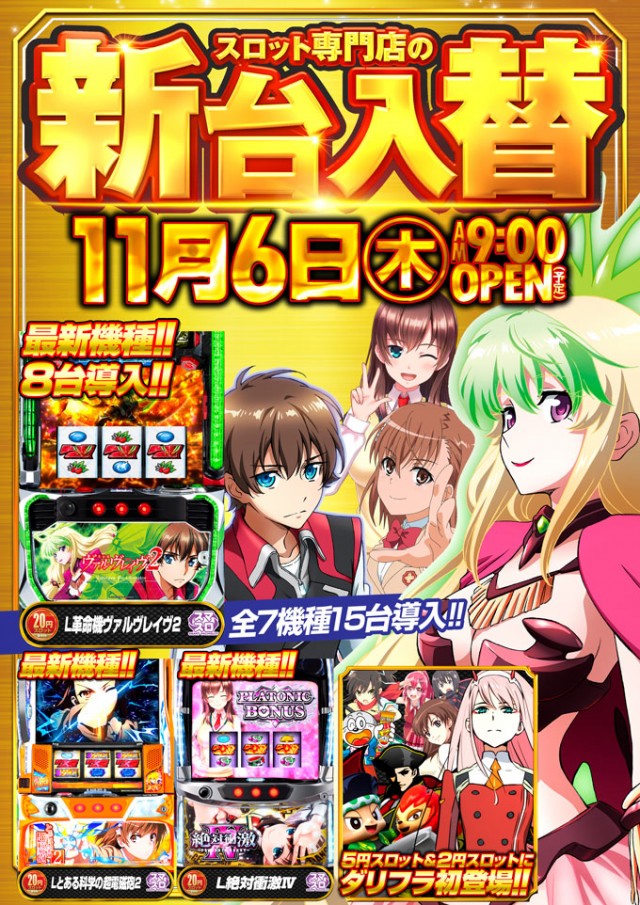 11月6日【木】新台入替! L革命機ヴァルヴレイヴ28台導入