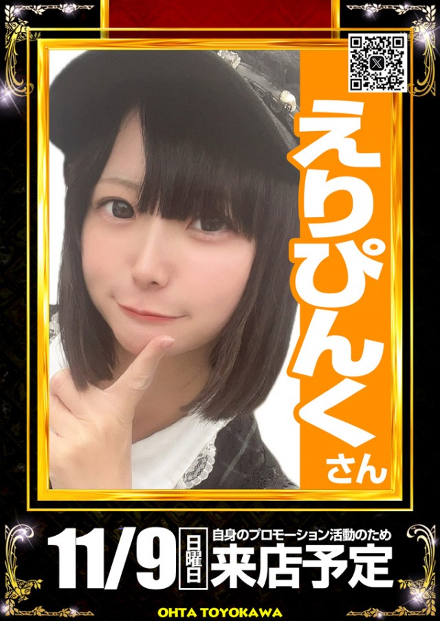 11月9日【日】えりぴんくさん来店予定!!朝9時OPEN!!