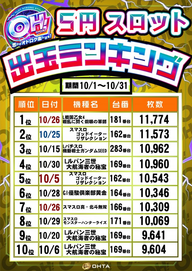 1位 10月26日(日) 2位 10月25日(土) 3位 10月12日(日)