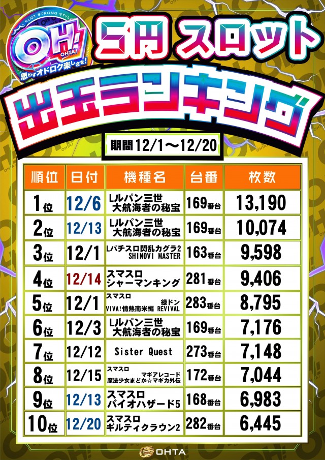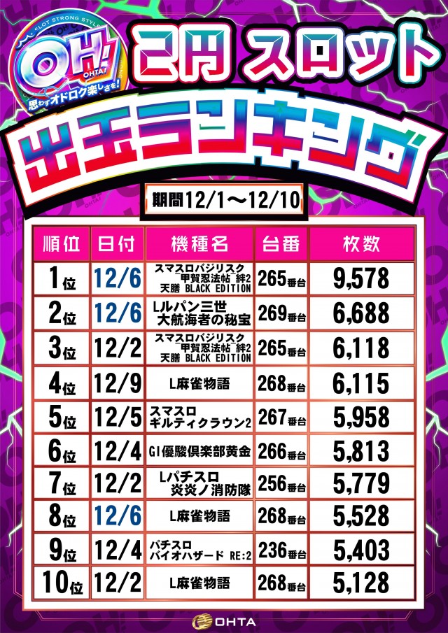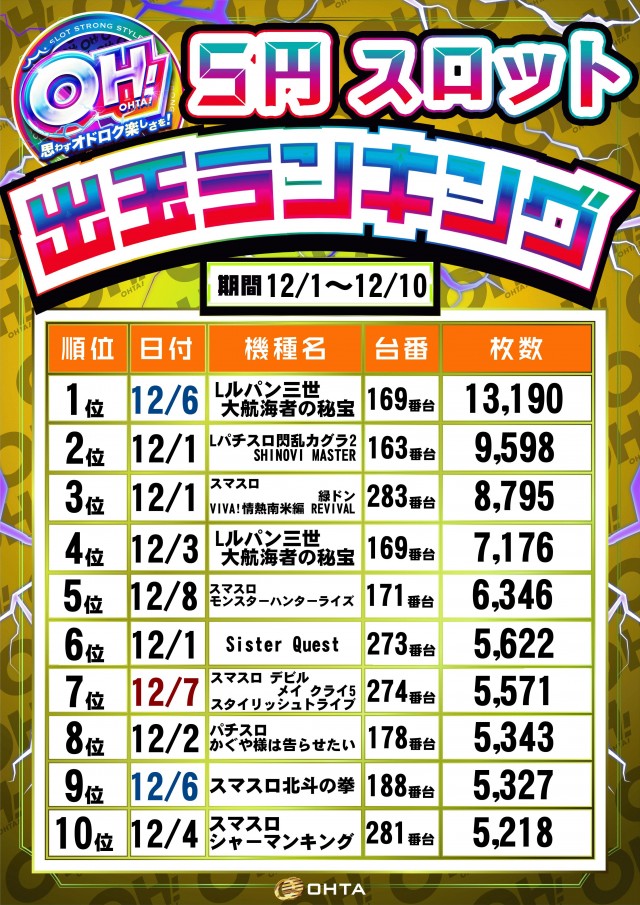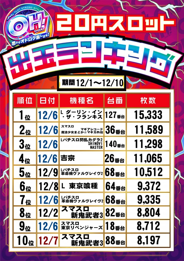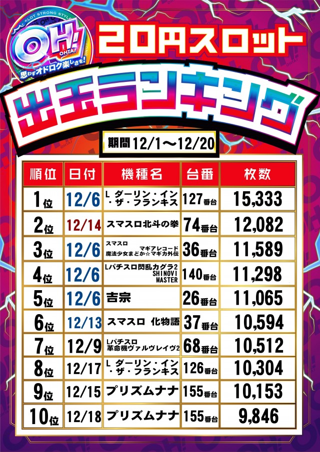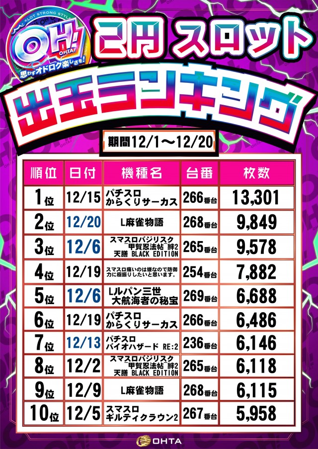 1位 12月12日(金) 2位 12月14日(日) 3位 12月20日(土)