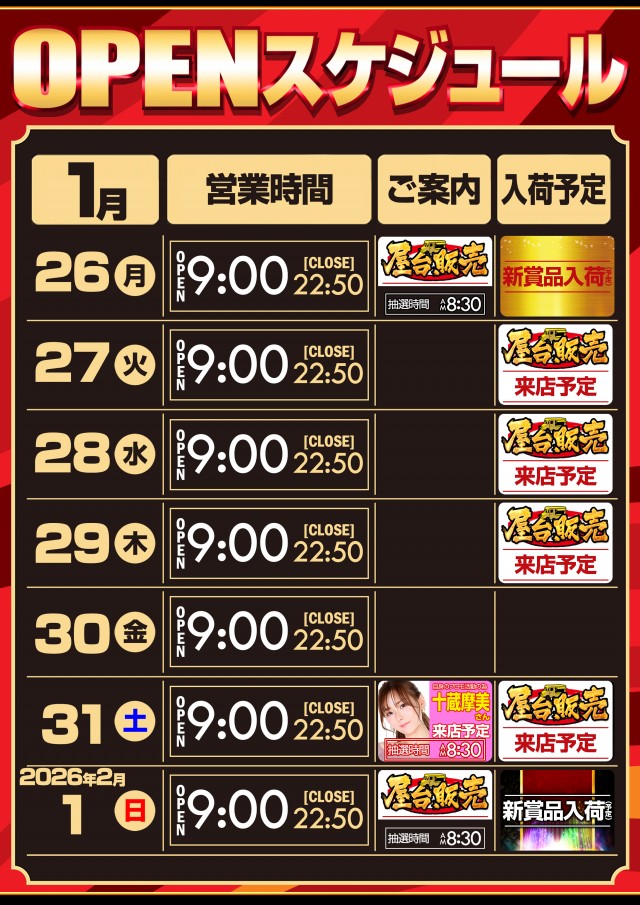1月24日【土】賞品入荷予定!朝9時OPEN!