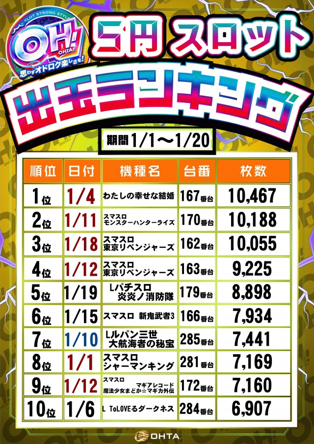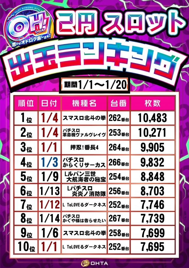 1位 1月3日(土) 2位 1月6日(火) 3位 1月4日(日)