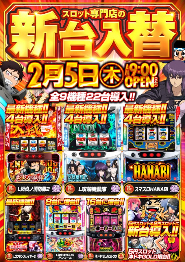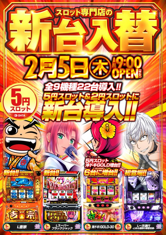 2月5日【木】新台入替予定!!朝9時OPEN!!