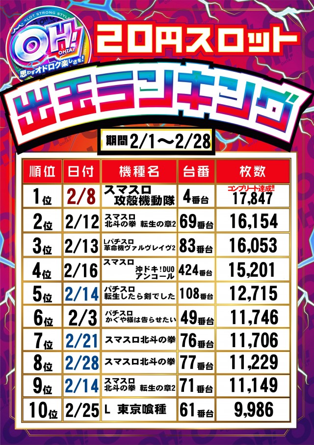 [スロ] 20円:320台 5円:80台 2円:48台 計448台 |