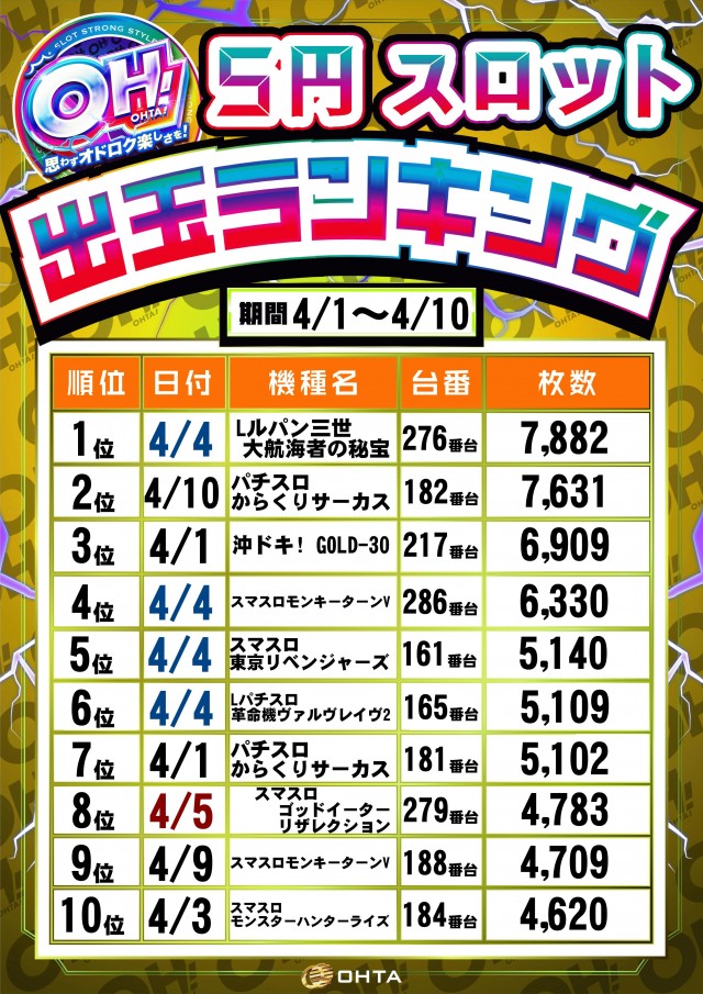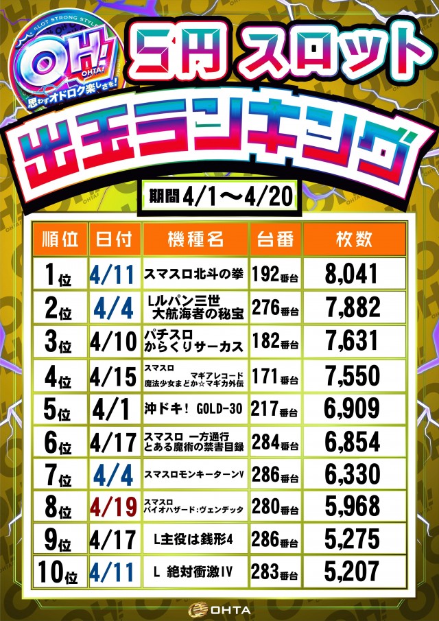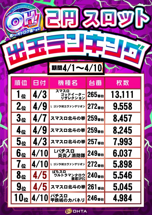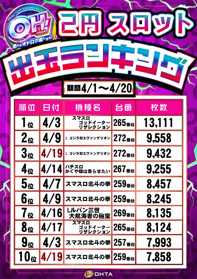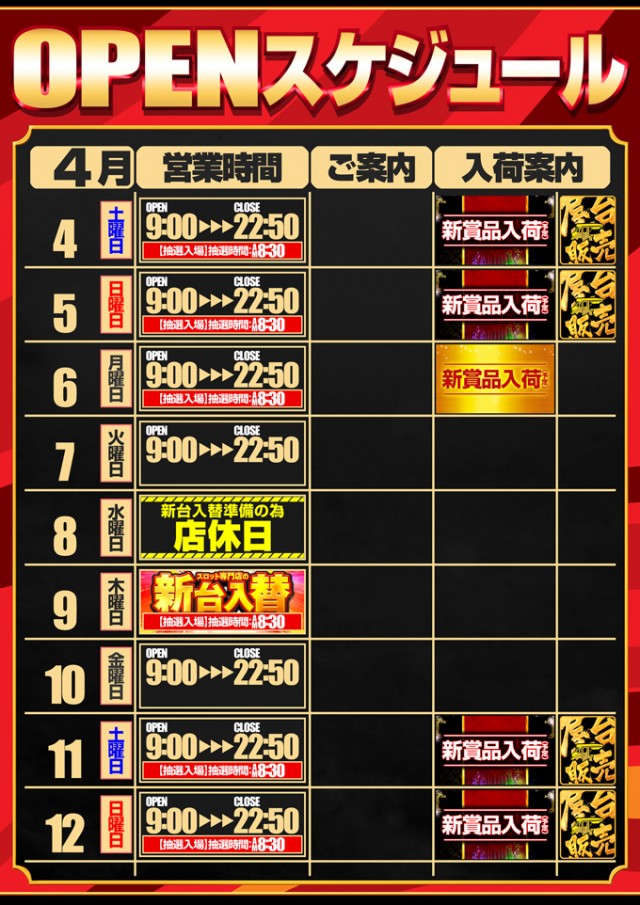 4月9日【木】新台入替予定!!朝9時OPEN!!