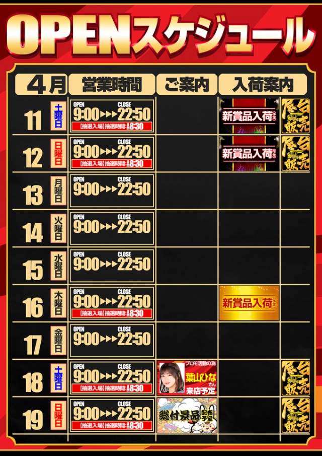 4月19日【日】総付配布予定!!朝9時OPEN!!