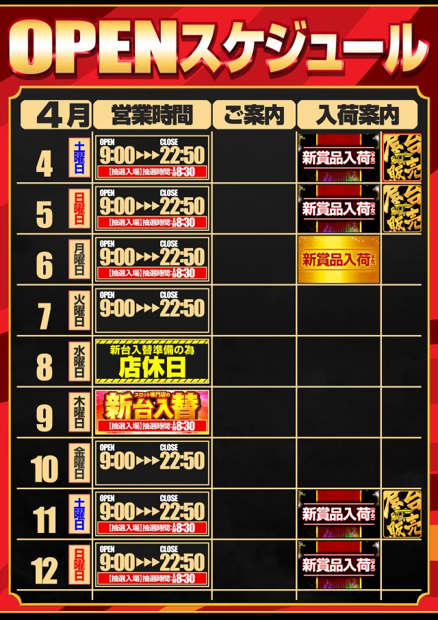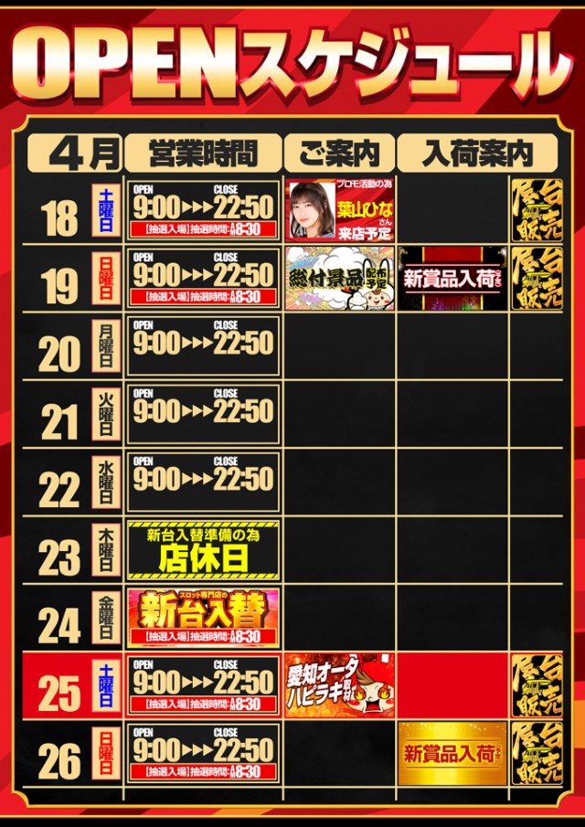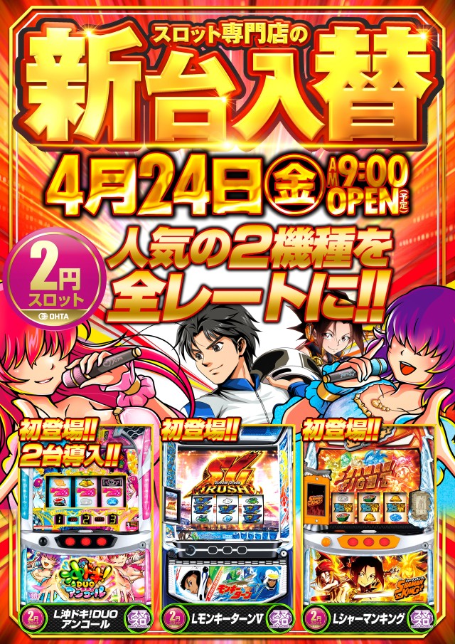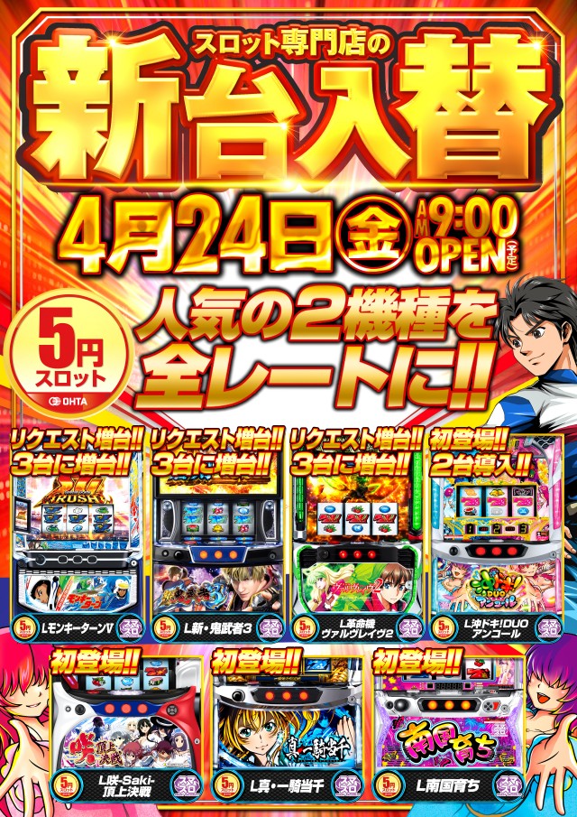 4月24日【金】新台入替!!朝9時OPEN!!
