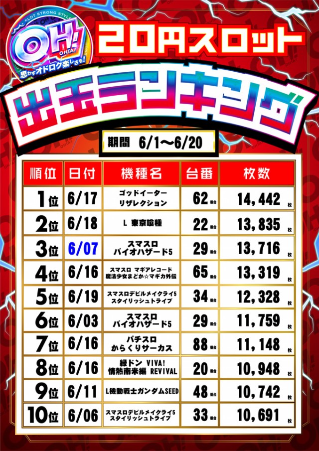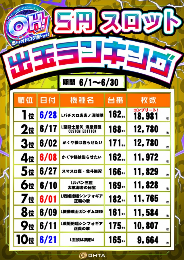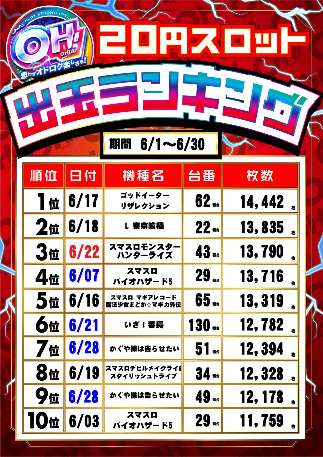 6月22日【日】総付景品配布予定!朝9時開店!