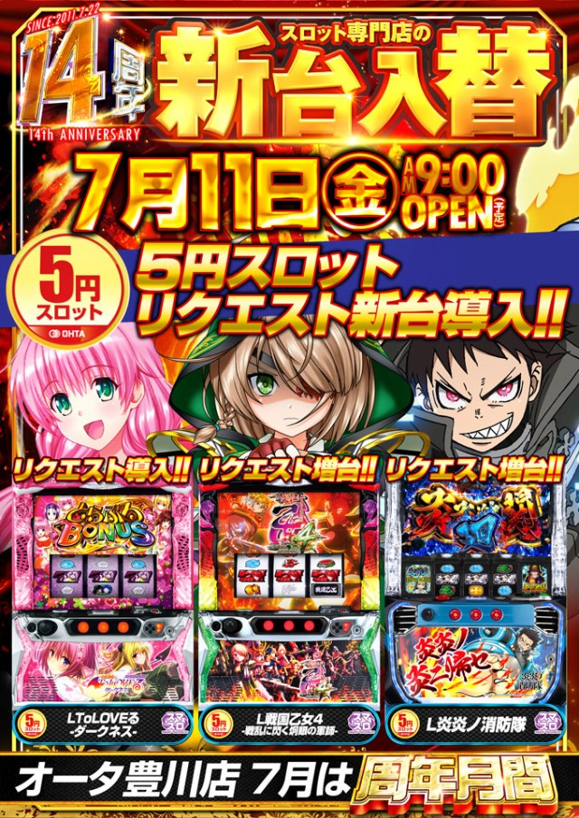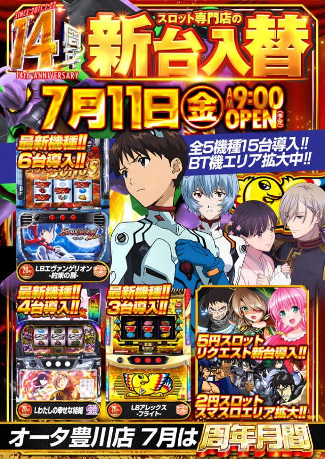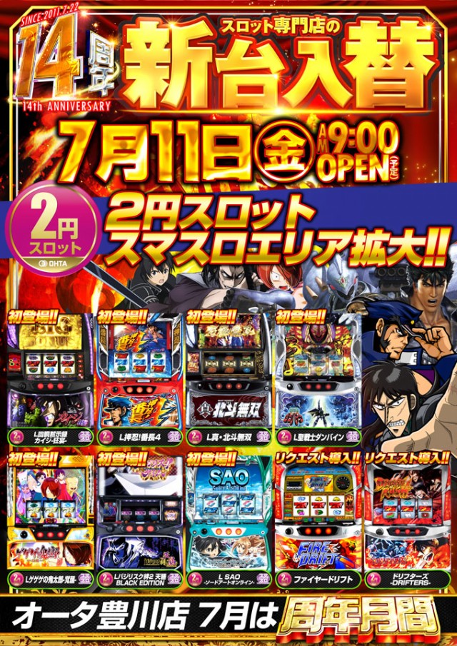 7月11日【金】新台入替!朝9時開店!