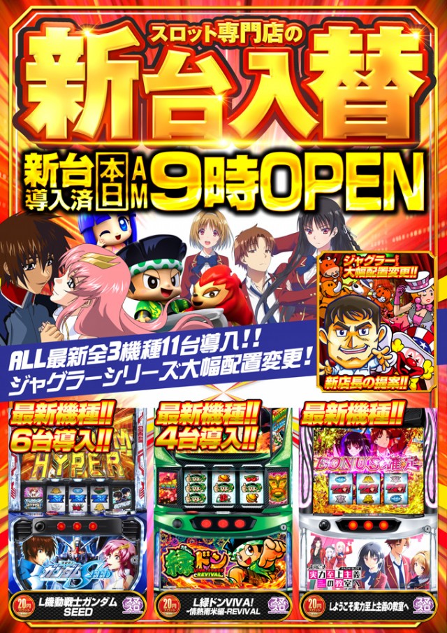 6月6日【金】新台入替&賞品入荷!朝9時開店!