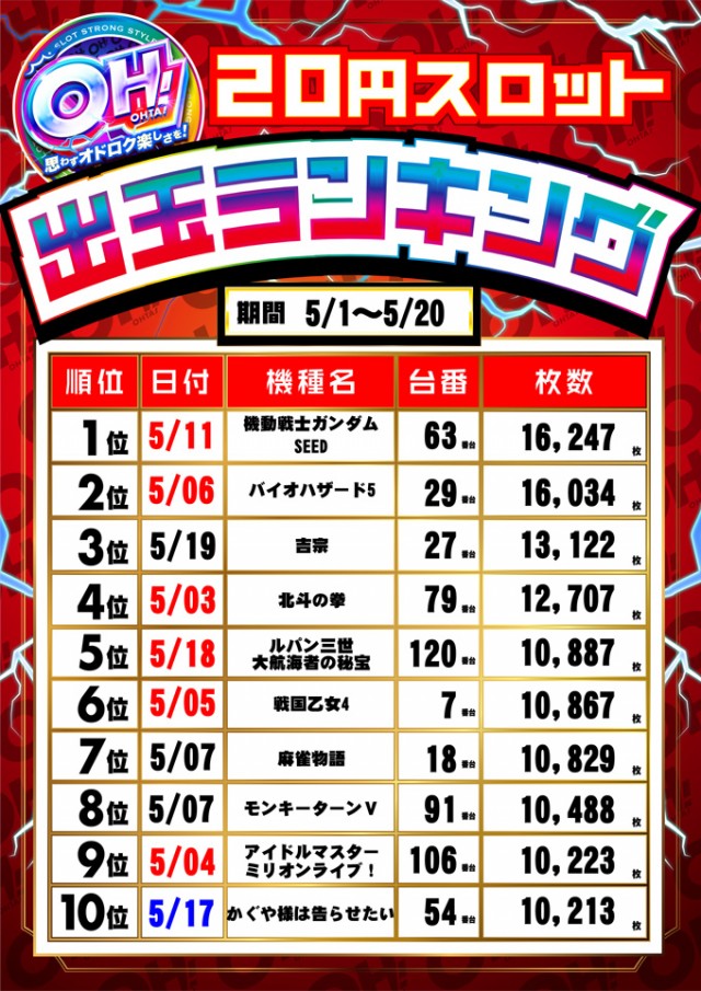 [スロ] 20円:320台 5円:80台 2円:48台 計448台 |