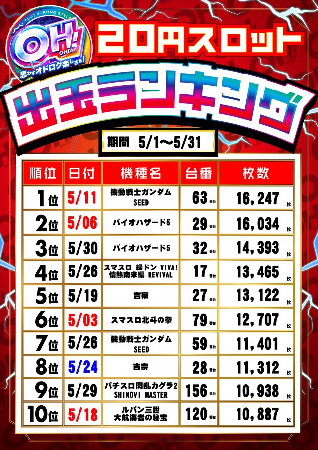 5月31日【土】賞品入荷!朝9時開店!