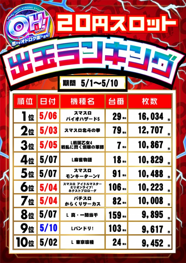 5月17日【土】賞品入荷&総付配布!朝9時開店!