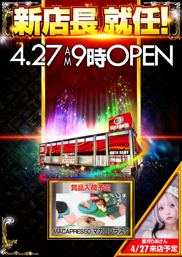 4月27日【日】蜜月りあさん来店!賞品入荷!朝9時開店!