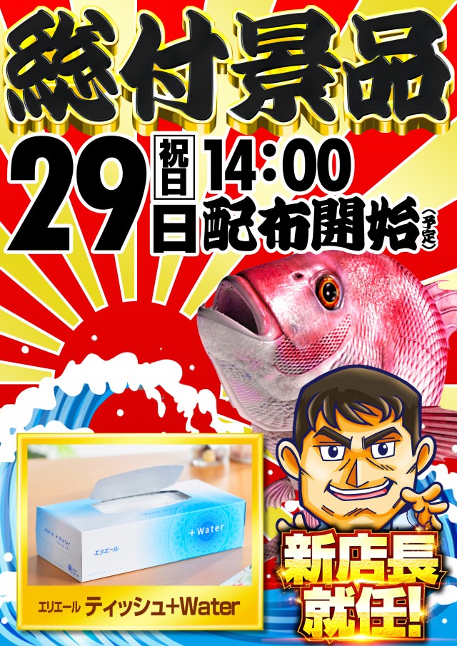 4月29日【祝】総付景品配布!朝9時開店!