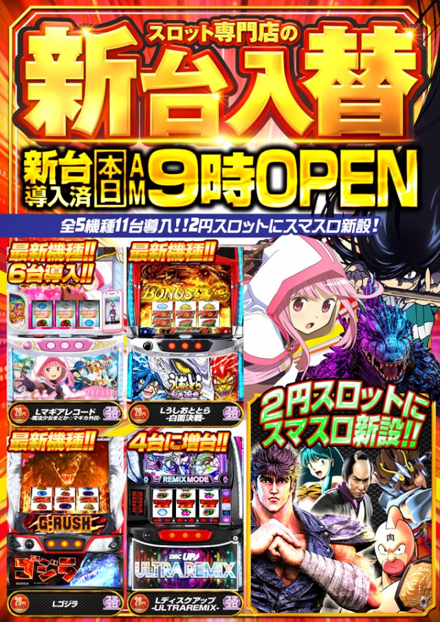 年中無休(新台入替準備の為お休みを頂く場合が御座います。) |