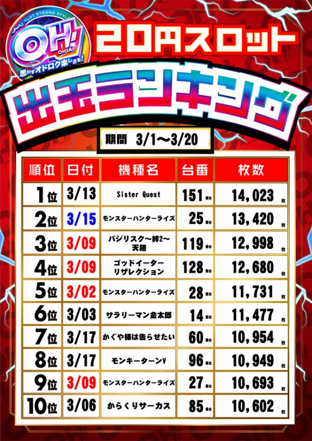 3月23日【日】賞品入荷!朝9時開店!
