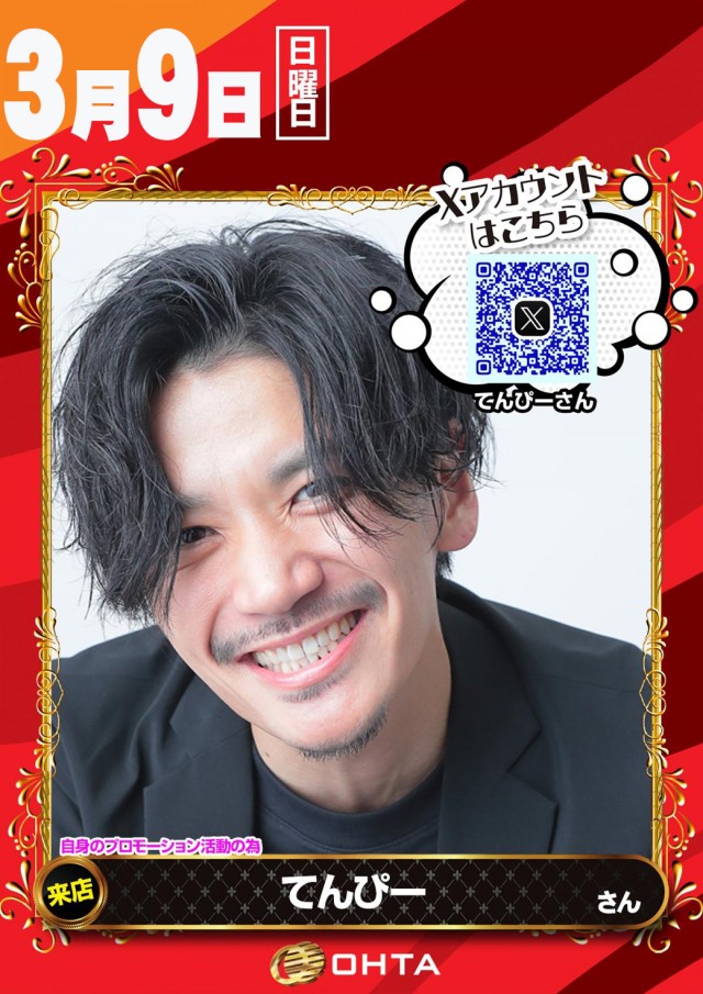 3月9日【日】てんぴーさん来店&賞品入荷!朝9時開店!