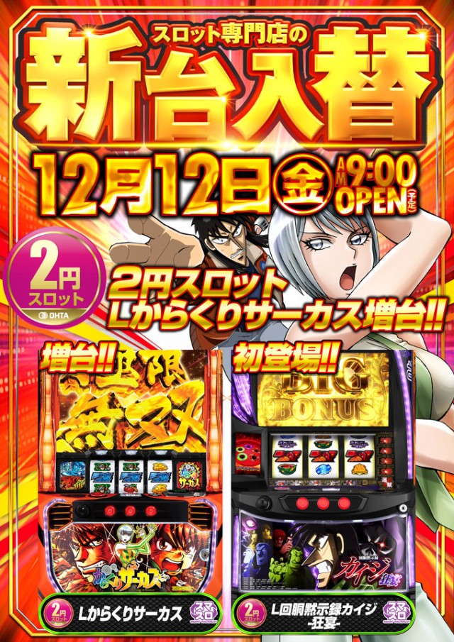 12月12日【金】新台入替!朝9時OPEN!