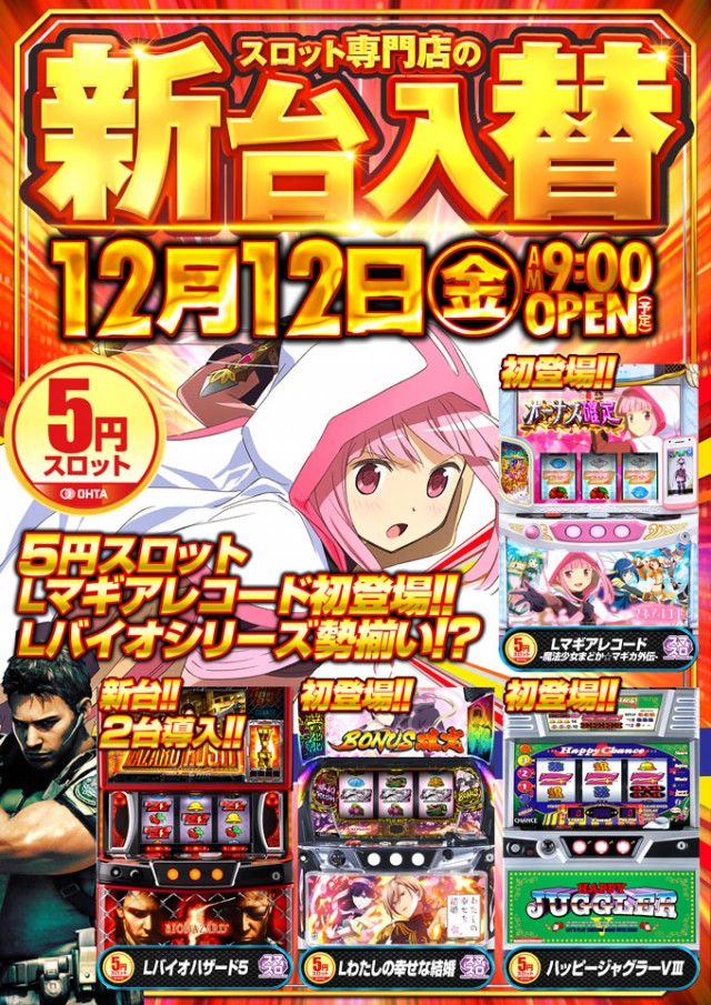 12月13日【土】新台入替2日目!朝9時OPEN!