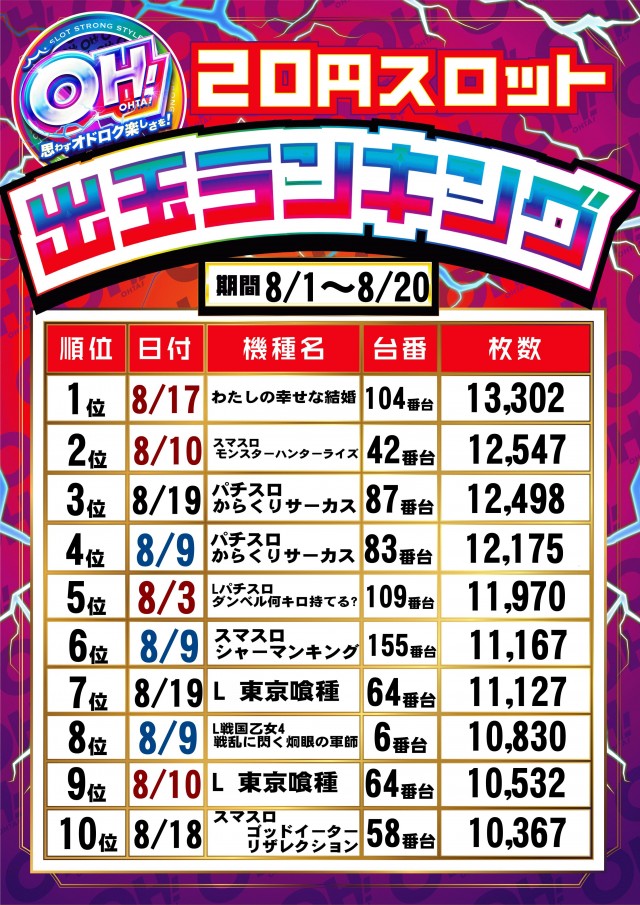 [スロ] 20円:320台 5円:80台 2円:48台 計448台 |