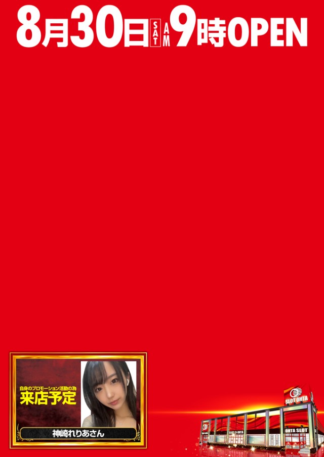 8月30日【土】神崎れりあさん来店予定!朝9時開店!