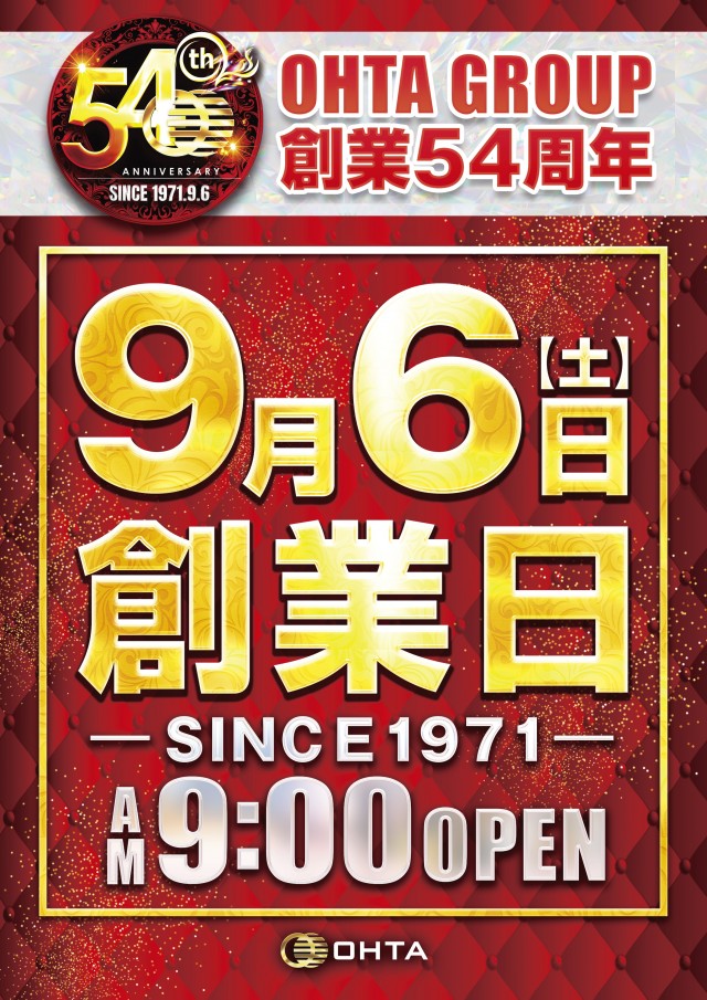 9月6日【土】本日創業日&ファン感謝デー!朝9時開店!