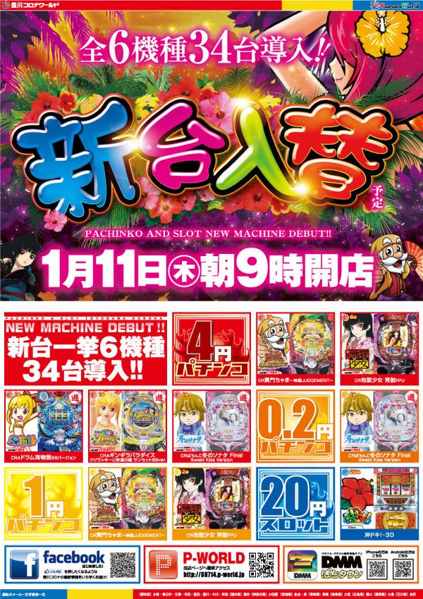 1月11日(木)★パチンコ豊川コロナ★新台入替朝9時開店