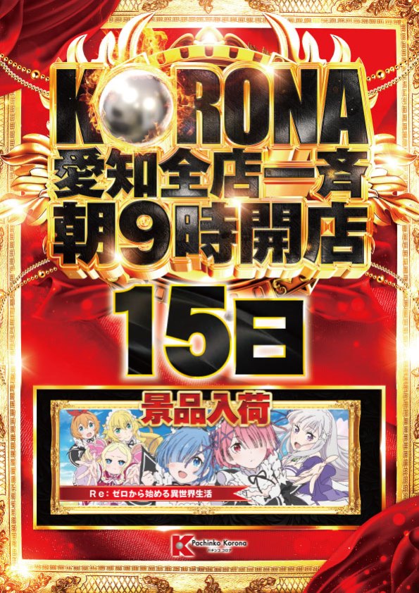 明日☆パチンココロナ 愛知全店一斉 朝9時開店☆