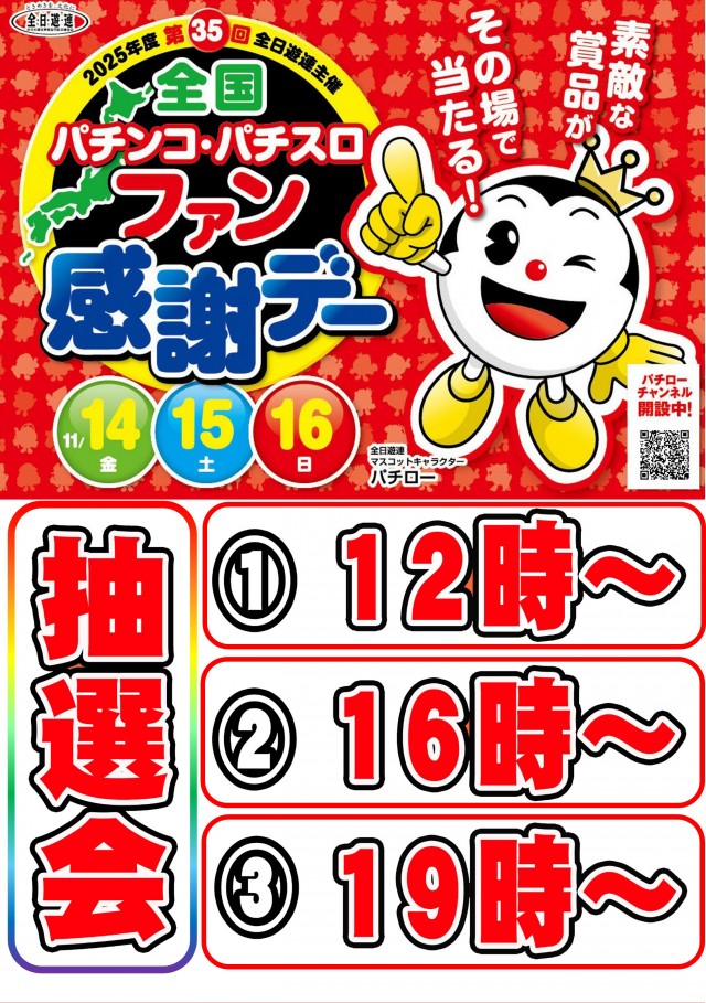 【全国パチンコ・パチスロファン感謝デー】開催中
