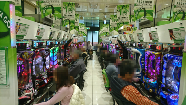 1円パチンコも人気の様子。楽しそうに遊技するプレイヤーや隣同士で会話しながら遊技するプレイヤーが多数見受けられ、コーナー全体にプレイヤーの笑顔が広がっていた。