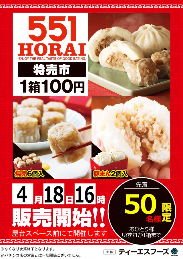 本日551蓬莱特売市開催!ご来店お待ちしております!!