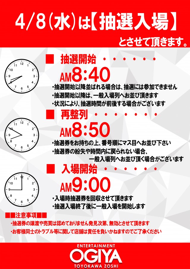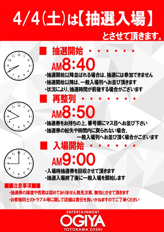 明日新台入替初日!朝9時開店です!!