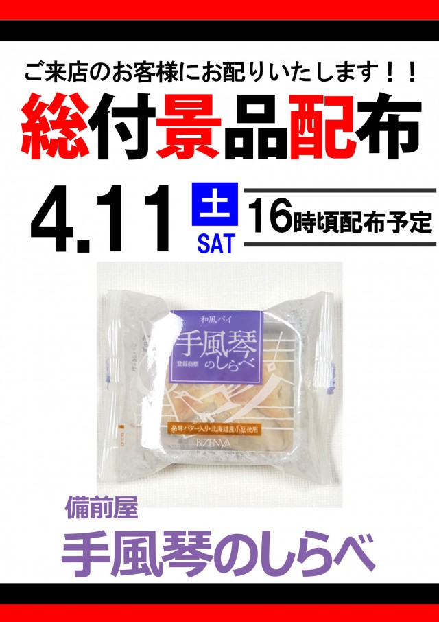 本日総付景品配布!ご来店お待ちしております♪