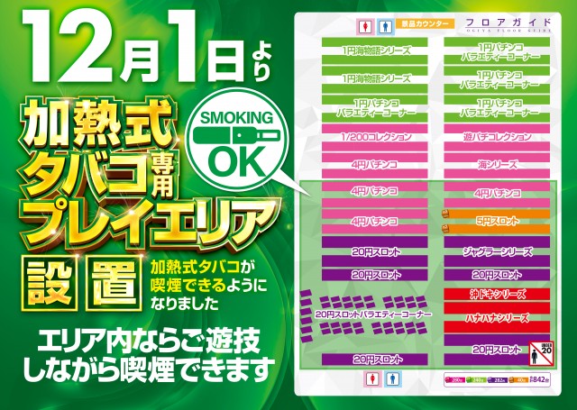 明日より加熱式タバコ専用プレイエリア設置します!!