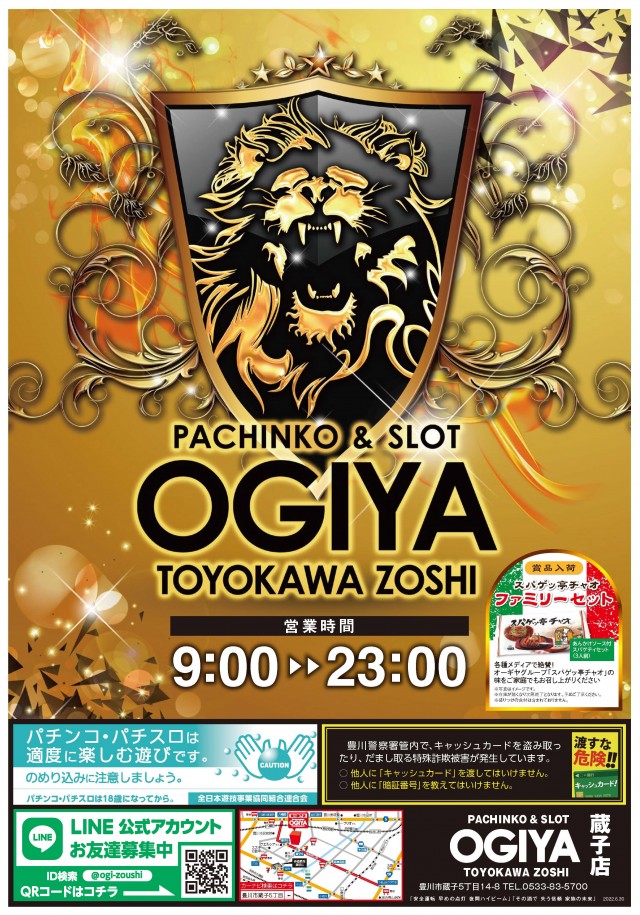 9:00 ~ 23:00(遊技終了時間は22:45) |