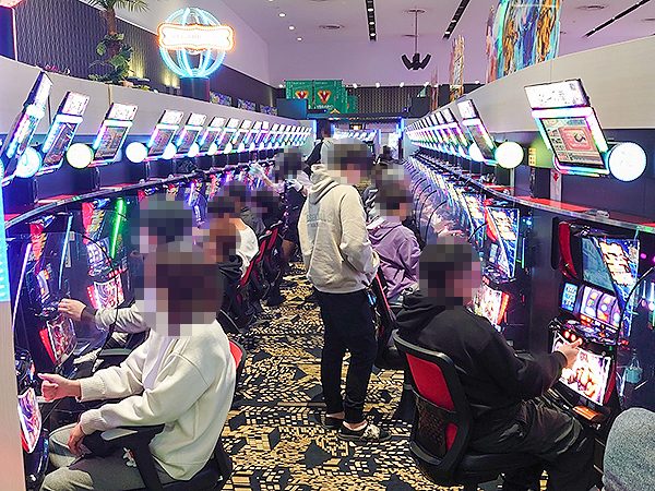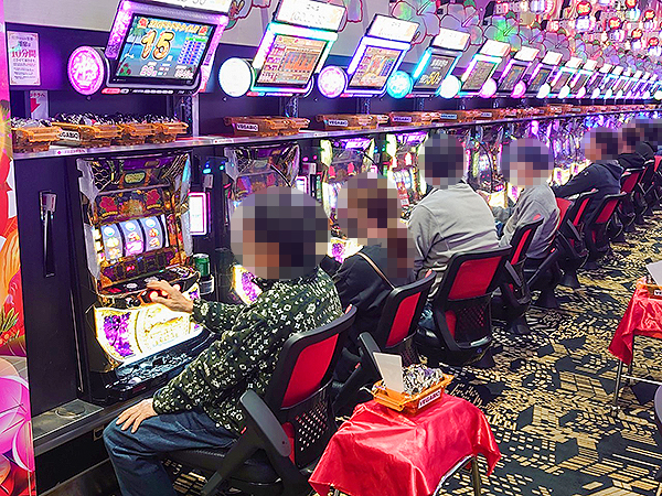 まず店内で目を引いたのは、スロットコーナーの「沖ドキ!GOLD-30」 をはじめとする沖スロだ!機種性能を最大限に引き出すプレイヤーが多く、シマ全体に華やかな光景が広がっていた。