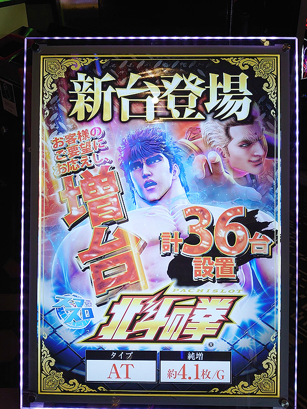 さらに36台へ増台された「スマスロ北斗の拳」も大盛り上がり。魅力的なシーンをシマの至る所で目にしている。